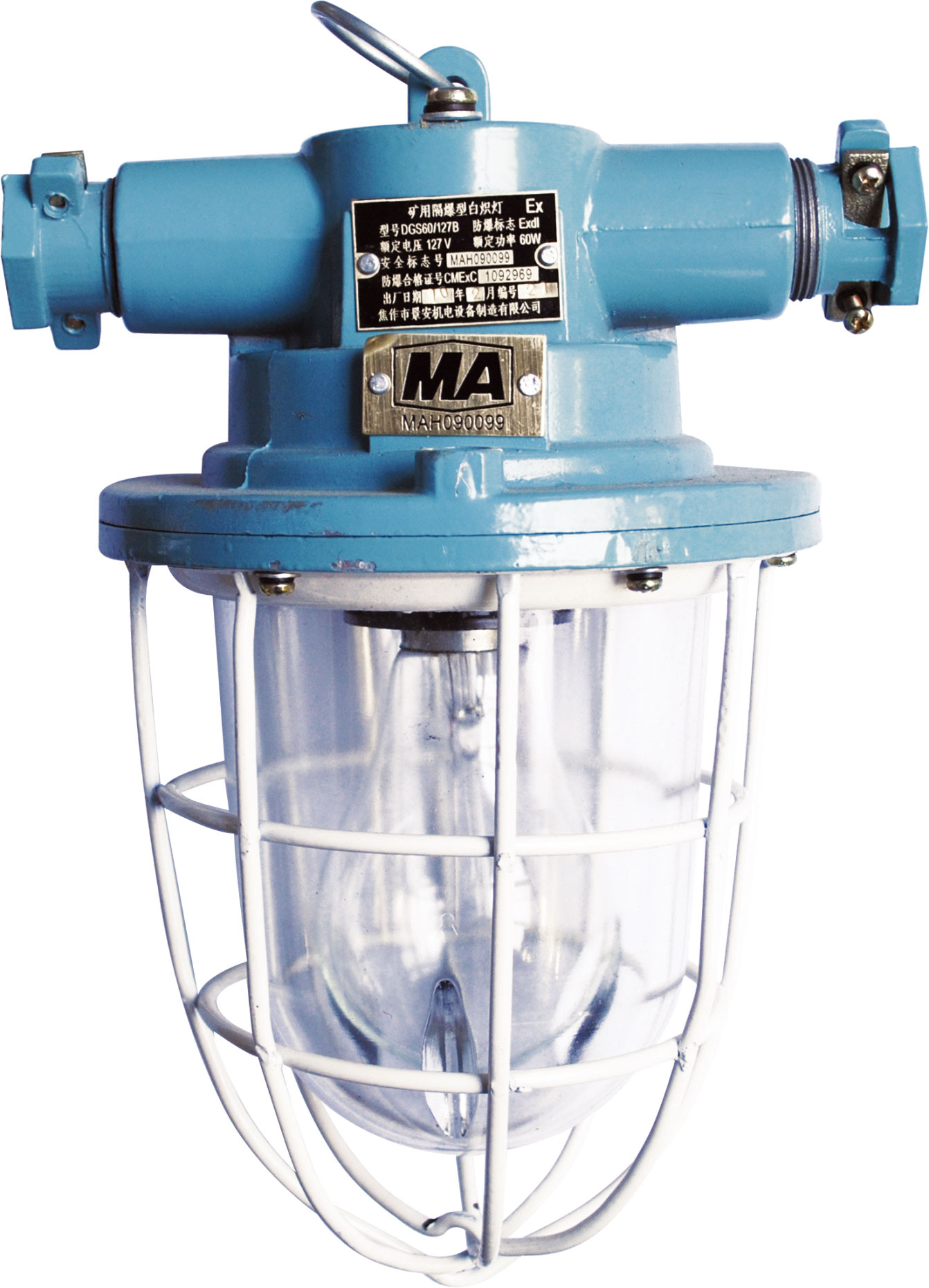 DGS60/127B礦用隔爆型白熾燈(以下簡(jiǎn)稱(chēng)60W白熾燈)。適用于具有瓦斯及煤塵爆炸危險(xiǎn)的礦井中,可供車(chē)場(chǎng)及機(jī)電峒室、中心變電所、大巷運(yùn)輸、泵房等場(chǎng)所供照明之用。